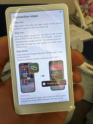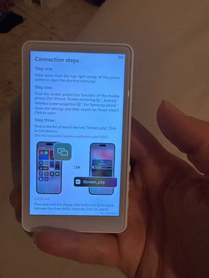 Power on the monitor and use the wireless pairing steps in the manual. For iPhone, disable WiFi to reduce latency. If pairing fails, long-press the bottom right button to switch channels.